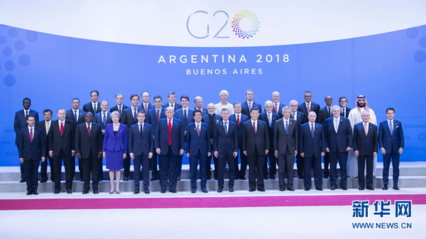 當(dāng)?shù)貢r間11月30日,二十國集團領(lǐng)導(dǎo)人第十三次峰會在阿根廷布宜諾斯艾利斯舉行。國家主席習(xí)近平出席第一階段會議并發(fā)表題為《登高望遠,牢牢把握世界經(jīng)濟正確方向》的重要講話。這是習(xí)近平同其他與會領(lǐng)導(dǎo)人合影。 新華社記者 李濤 攝