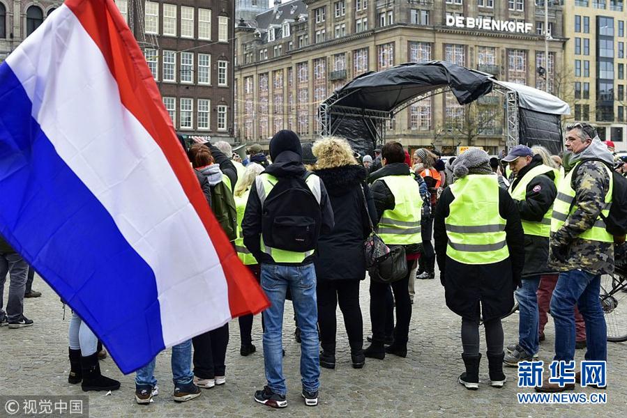 當?shù)貢r間12月15日,荷蘭阿姆斯特丹,當?shù)乇l(fā)“黃背心”抗議活動。(圖片來源:視覺中國)
