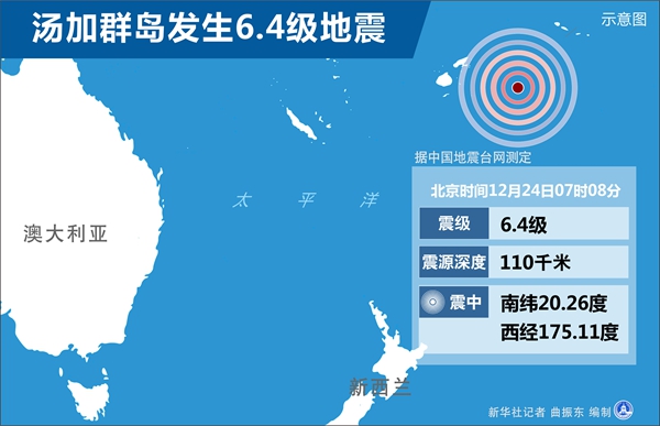湯加群島發(fā)生6.4級地震 新華社記者 曲振東 編制
