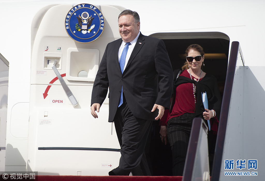 2019年1月13日,卡塔爾多哈,美國國務(wù)卿邁克·蓬佩奧訪問卡塔爾。蓬佩奧與卡塔爾副首相兼外交大臣穆罕默德在多哈的喜來登大酒店簽署了諒解備忘錄和意向聲明并舉行聯(lián)合記者會。蓬佩奧表示,兩國外交部門領(lǐng)導人當天簽署了一份諒解備忘錄,將擴建和改造烏代德美國空軍基地。(圖片來源:視覺中國)
