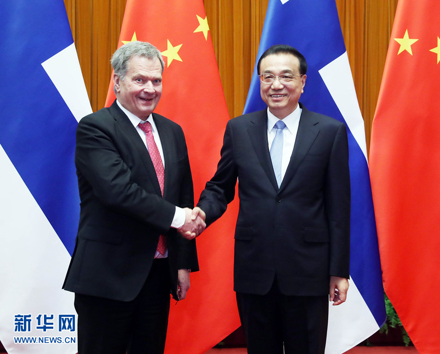 李克強表示,中芬關系長期以來保持良好穩(wěn)定發(fā)展,走在中國同西方國家關系的前列。昨天,習近平主席同總統(tǒng)先生舉行了富有成果的會談,共同規(guī)劃兩國關系未來發(fā)展。中方愿同芬方繼續(xù)努力,推動中芬合作取得更多新成果,為中芬關系不斷注入新動力。