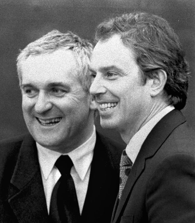 當(dāng)時,代表愛爾蘭和英國政府簽署協(xié)議的分別是時年47歲的愛爾蘭總理伯蒂·埃亨和45歲的英國首相托尼·布萊爾。