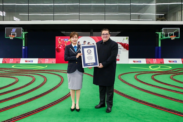 2019年1月9日,來自智利的24638個(gè)深紅色大櫻桃,漂洋過海來到中國上海,通過排列,組成了兩顆手牽手櫻桃的巨大圖案,創(chuàng)造了“最長的水果隊(duì)列”吉尼斯世界紀(jì)錄稱號(hào)。