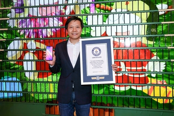 2018年12月24日,雷軍攜小米團(tuán)隊(duì)向吉尼斯世界紀(jì)錄“最大的手機(jī)動(dòng)態(tài)拼圖”稱(chēng)號(hào)發(fā)起挑戰(zhàn)。
