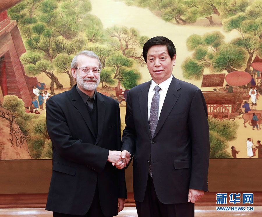 2月19日,全國(guó)人大常委會(huì)委員長(zhǎng)栗戰(zhàn)書(shū)在北京人民大會(huì)堂與伊朗伊斯蘭議會(huì)議長(zhǎng)拉里賈尼舉行會(huì)談。 新華社記者 龐興雷 攝