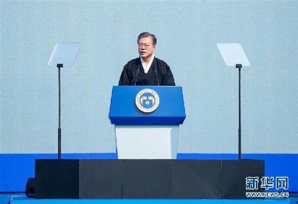 3月1日,韓國總統(tǒng)文在寅在首爾舉行的“三一運動”100周年大會上發(fā)表講話。 韓國總統(tǒng)文在寅1日在首爾光化門廣場出席紀念“三一運動”100周年大會時發(fā)表講話表示,韓國將力推構建“新半島體系”,實現(xiàn)韓朝之間共建“和平合作共同體”和“經濟合作共同體”。新華社記者 王婧嬙 攝