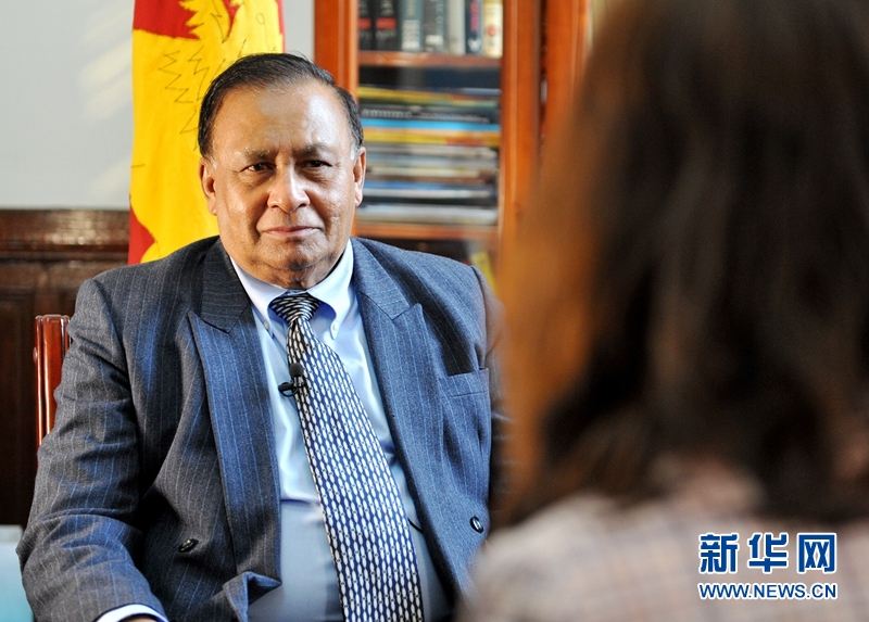 斯里蘭卡駐華大使科迪圖瓦庫(kù)接受新華網(wǎng)專訪。新華網(wǎng)發(fā) 徐昕 攝