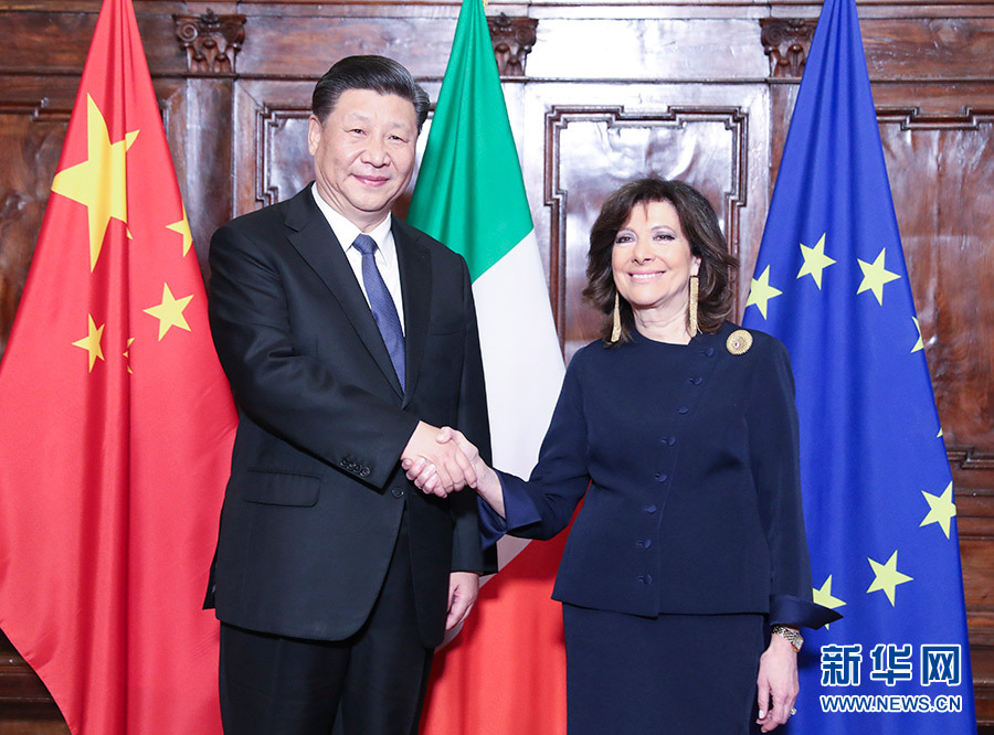 3月22日,國(guó)家主席習(xí)近平在羅馬會(huì)見意大利參議長(zhǎng)卡塞拉蒂。 新華社記者 姚大偉 攝