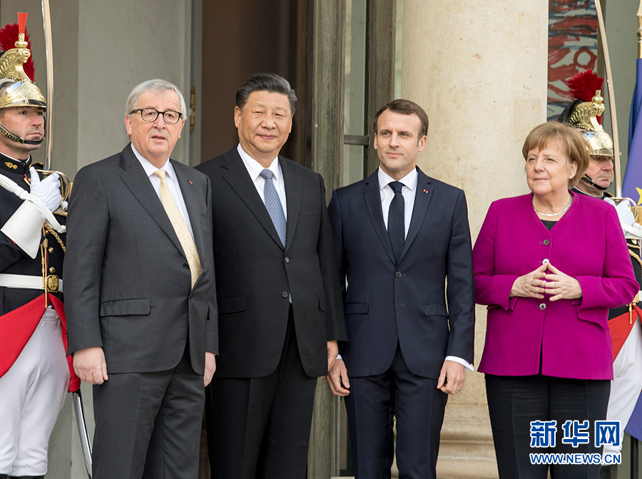 3月26日,國家主席習近平在巴黎同出席中法全球治理論壇閉幕式的法國總統(tǒng)馬克龍、德國總理默克爾和歐盟委員會主席容克舉行會晤。 新華社記者 高潔 攝
