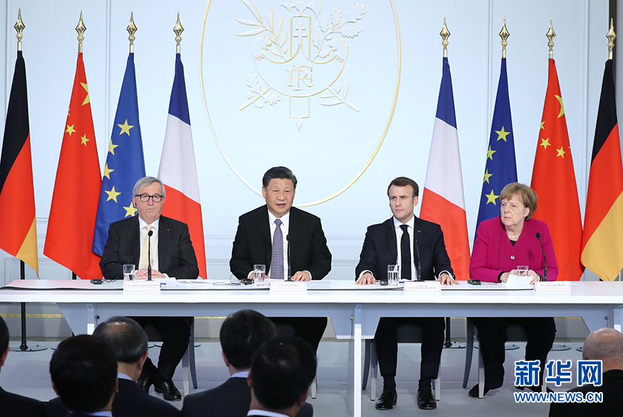 3月26日,國(guó)家主席習(xí)近平在巴黎同法國(guó)總統(tǒng)馬克龍一道出席中法全球治理論壇閉幕式。德國(guó)總理默克爾、歐盟委員會(huì)主席容克應(yīng)邀出席。新華社記者 鞠鵬 攝