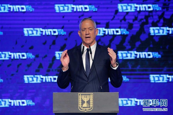 以色列藍白黨領導人甘茨4月10日晚發(fā)表講話,承認在議會選舉中失敗。這是4月9日,在以色列特拉維夫,以色列藍白黨領導人甘茨對支持者講話。新華社發(fā)(吉爾·科恩·馬根 攝)