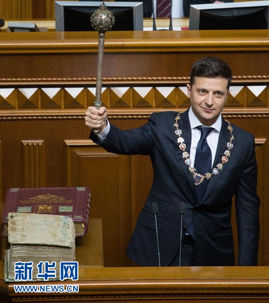 新華社基輔5月20日電(記者陳俊鋒 鐘忠)烏克蘭當(dāng)選總統(tǒng)澤連斯基20日在烏克蘭最高拉達(dá)(議會(huì))大會(huì)上宣誓就職,任期5年。