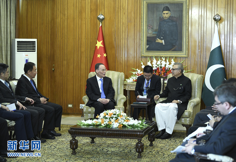 會(huì)見阿爾維時(shí),王岐山表示,中巴是“鐵桿”朋友。建交68年來,無論國際風(fēng)云如何變幻,兩國始終在涉及彼此核心利益問題上相互尊重、相互支持,結(jié)下了最真誠的友誼。近年來,中巴關(guān)系發(fā)展勢頭良好,雙方政治互信進(jìn)一步增強(qiáng),務(wù)實(shí)合作不斷深化,人文交往更加活躍。中巴經(jīng)濟(jì)走廊建設(shè)取得實(shí)實(shí)在在的成果,已成為新時(shí)期中巴友好合作的重要標(biāo)志。我這次訪巴,就是再次向兩國人民和世界發(fā)出中巴是全天候戰(zhàn)略合作伙伴的訊號(hào)。中方愿同巴方加強(qiáng)各領(lǐng)域、各層次、全方位合作,讓中巴友好更好地惠及兩國和兩國人民,打造新時(shí)代更緊密的中巴命運(yùn)共同體。