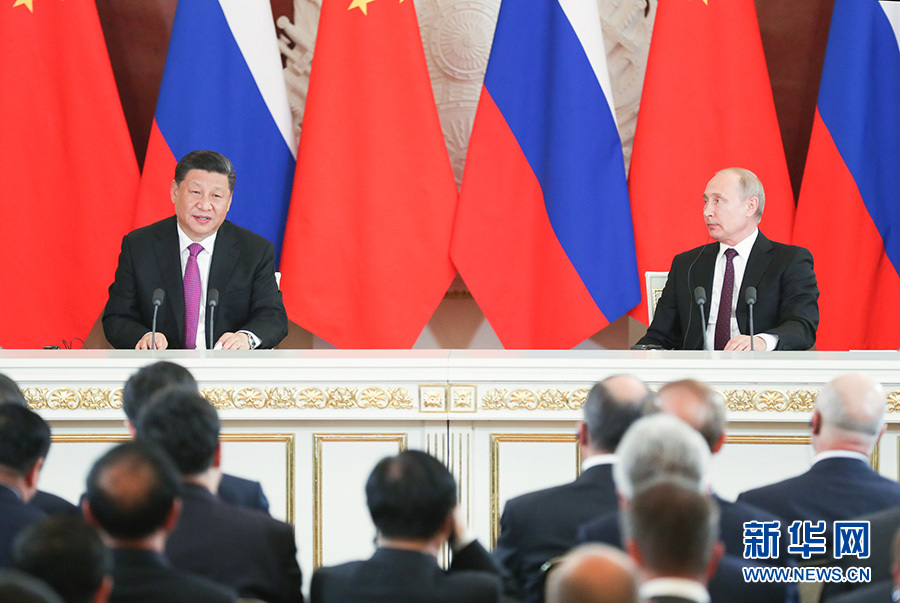 6月5日,國家主席習(xí)近平在莫斯科克里姆林宮同俄羅斯總統(tǒng)普京會(huì)談。會(huì)談后,兩國元首共同簽署《中華人民共和國和俄羅斯聯(lián)邦關(guān)于發(fā)展新時(shí)代全面戰(zhàn)略協(xié)作伙伴關(guān)系的聯(lián)合聲明》、《中華人民共和國和俄羅斯聯(lián)邦關(guān)于加強(qiáng)當(dāng)代全球戰(zhàn)略穩(wěn)定的聯(lián)合聲明》,并見證多項(xiàng)雙邊合作文件的簽署。 新華社記者 李學(xué)仁 攝