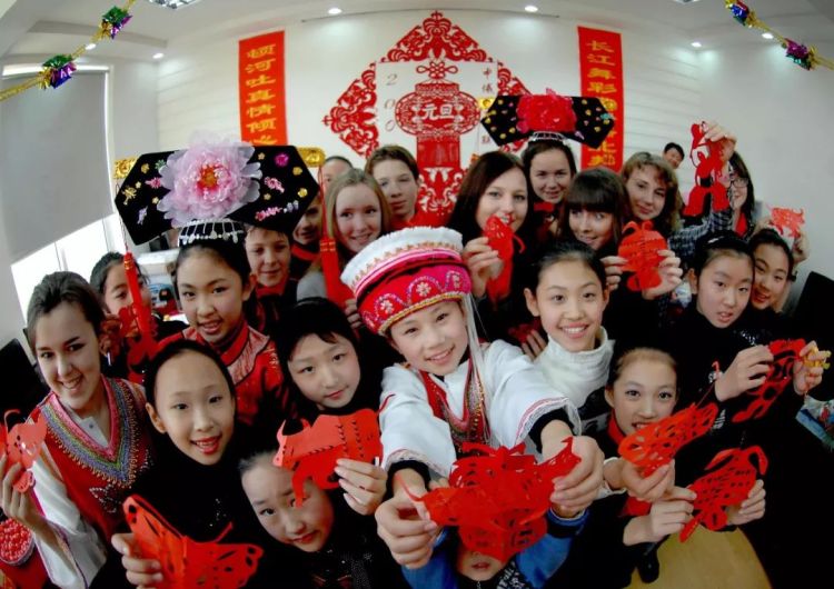 ↑俄羅斯學(xué)生在符拉迪沃斯托克遠(yuǎn)東聯(lián)邦大學(xué)孔子學(xué)院書寫漢字。(2017年,尤里·斯米秋克)