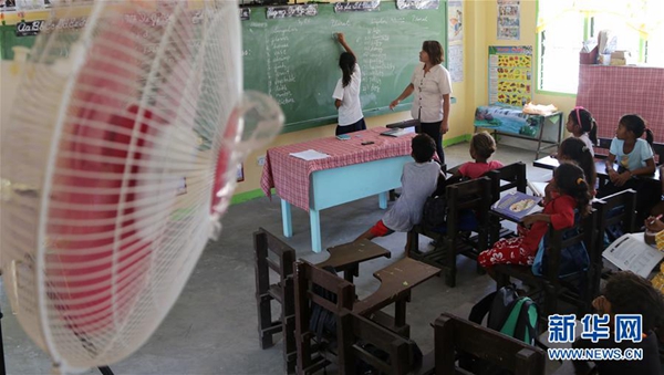 菲律賓中小學(xué)6月開始新學(xué)年。坐在明亮涼爽的教室中,巴利瓦特小學(xué)的孩子們十分興奮。“現(xiàn)在有了電燈、電風扇,孩子們終于不用渾身濕漉漉地趴在書桌上費力讀書了?!苯處煱@荨たㄍ呒铀拐f。