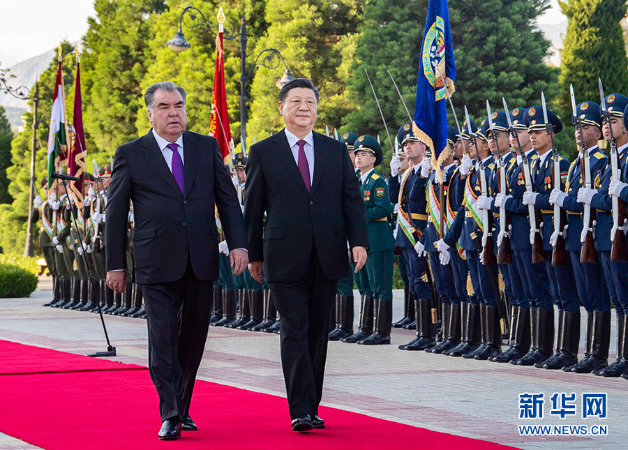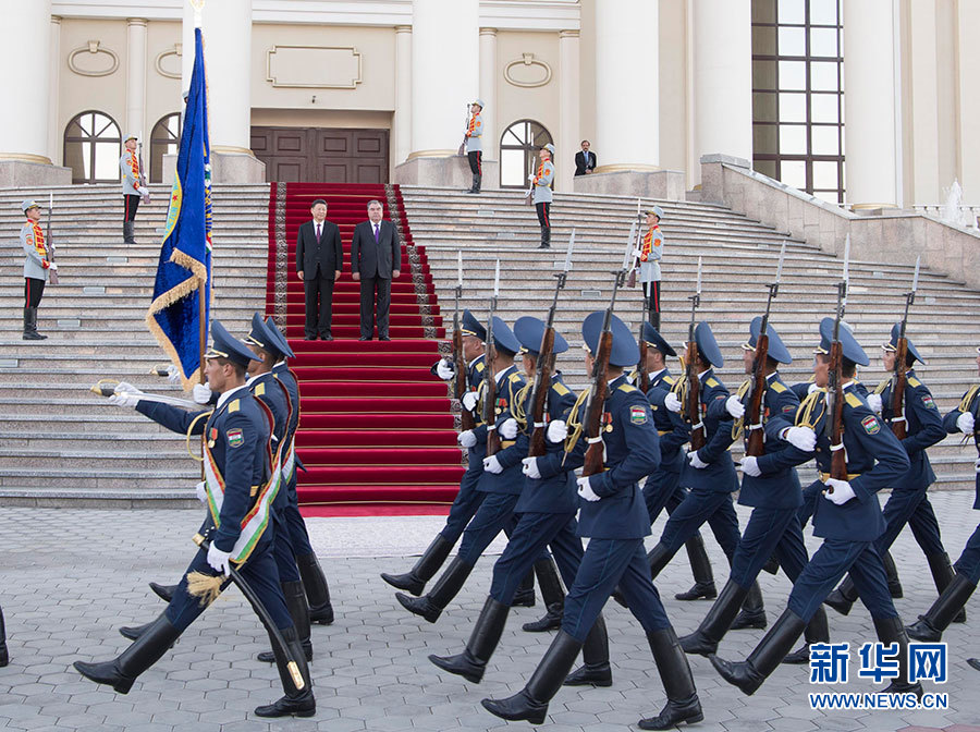 會談前,拉赫蒙在總統(tǒng)府前廣場為習(xí)近平舉行了盛大歡迎儀式。