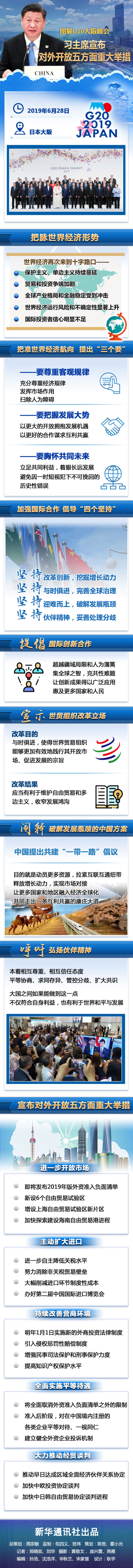 6月28日,習(xí)近平主席在日本大阪舉行的二十國集團(tuán)領(lǐng)導(dǎo)人峰會上發(fā)表題為《攜手共進(jìn),合力打造高質(zhì)量世界經(jīng)濟(jì)》的重要講話,宣布對外開放五方面重大舉措。