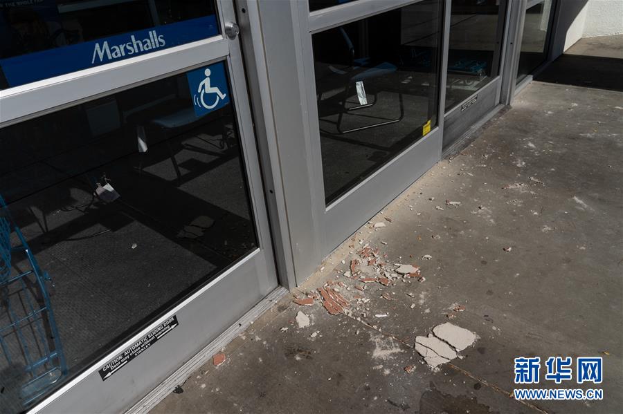 7月4日,在美國(guó)加利福尼亞州里奇克雷斯特,一家商店門(mén)口散落著墻體碎片。美國(guó)加利福尼亞州南部4日上午發(fā)生6.4級(jí)地震,洛杉磯地區(qū)有明顯震感,部分區(qū)域道路開(kāi)裂,但目前沒(méi)有人員傷亡的報(bào)道。新華社發(fā)(錢衛(wèi)忠攝)