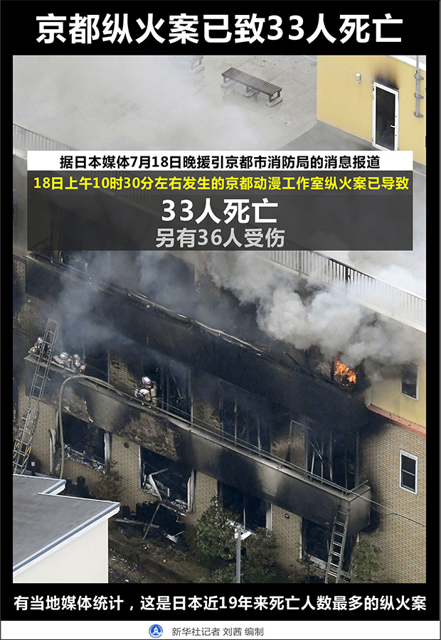 18日上午發(fā)生在日本京都動畫第一工作室的縱火案造成嚴重傷亡。據(jù)日本共同社報道,目前已確認33人死亡、36人受傷。有當?shù)孛襟w統(tǒng)計,這是日本近19年來死亡人數(shù)最多的縱火案。