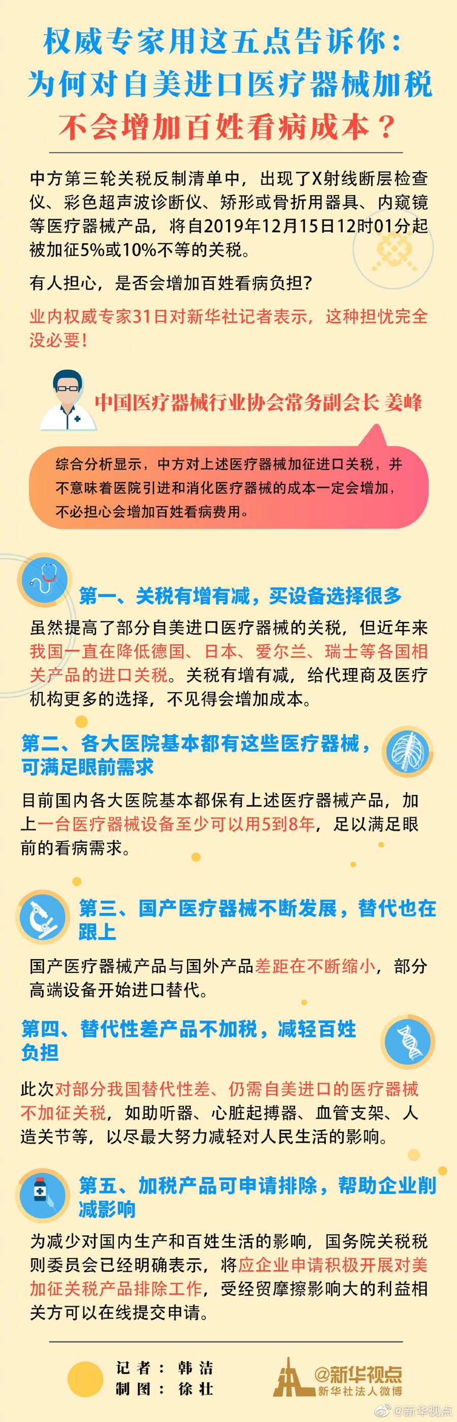 對此,中國醫(yī)療器械行業(yè)協(xié)會(huì)常務(wù)副會(huì)長姜峰31日接受記者采訪時(shí)說,綜合分析顯示,中方對上述醫(yī)療器械加征進(jìn)口關(guān)稅,并不意味著醫(yī)院引進(jìn)和消化醫(yī)療器械的成本一定會(huì)增加,不必?fù)?dān)心會(huì)增加百姓看病費(fèi)用。