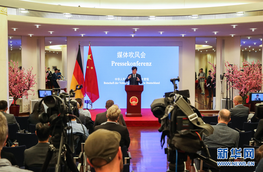 9月11日,在德國(guó)首都柏林的中國(guó)駐德國(guó)大使館,中國(guó)駐德國(guó)大使吳懇出席中外記者會(huì)。中國(guó)駐德國(guó)大使吳懇11日譴責(zé)一些德國(guó)政客把香港分裂分子黃之鋒奉為座上賓,奉勸德國(guó)某些政客停止干涉香港事務(wù)。 新華社記者單宇琦攝