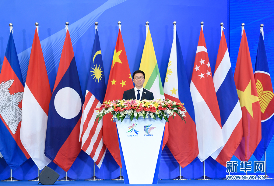9月21日,第十六屆中國(guó)-東盟博覽會(huì)和中國(guó)-東盟商務(wù)與投資峰會(huì)在廣西南寧開(kāi)幕。中共中央政治局常委、國(guó)務(wù)院副總理韓正出席開(kāi)幕式并發(fā)表主旨演講。 新華社記者 申宏 攝