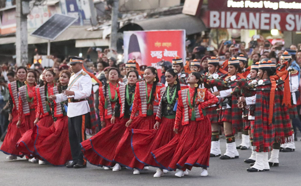 10月12日,尼泊爾民眾載歌載舞熱烈歡迎中國國家主席習近平來訪。新華社記者丁林攝