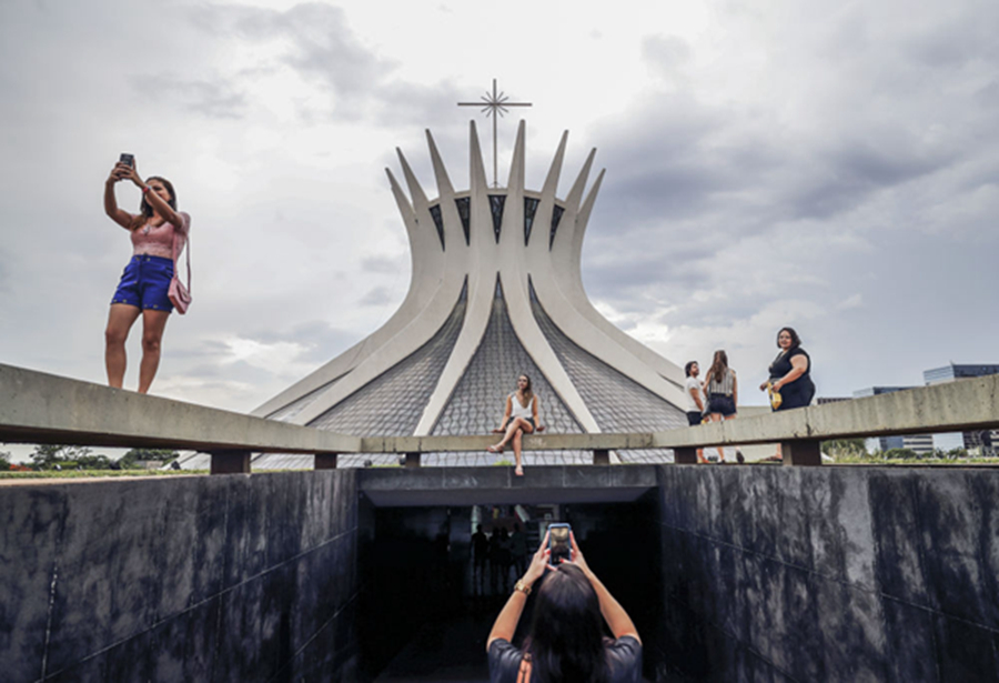 臨近“機(jī)尾”是高達(dá)224米的巴西利亞電視塔。登塔望遠(yuǎn),巴西利亞主城區(qū)井然有序的對(duì)稱(chēng)格局盡收眼底,一望無(wú)垠的藍(lán)天和變幻莫測(cè)的白云也是這里一道靚麗的風(fēng)景線。