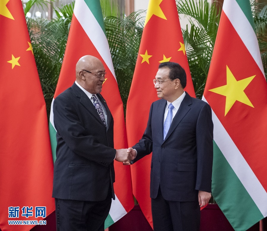 11月27日,國務(wù)院總理李克強在北京人民大會堂會見來華進行國事訪問的蘇里南總統(tǒng)鮑特瑟。 新華社記者 李學(xué)仁 攝