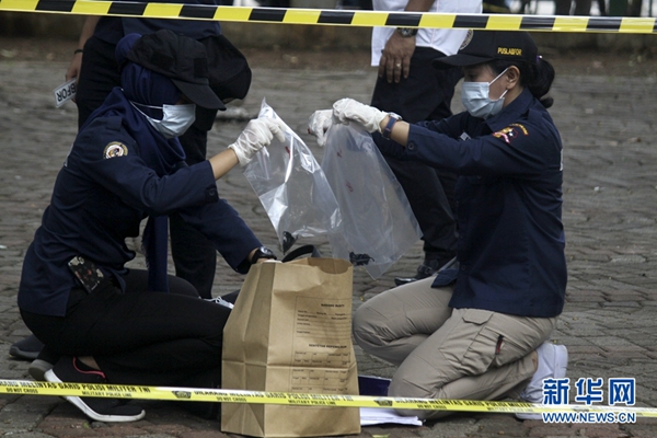 12月3日,在印度尼西亞雅加達(dá),警察在爆炸現(xiàn)場收集物證。新華社發(fā)(阿迪蒂亞·伊拉萬 攝)