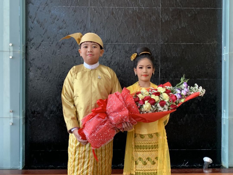 一對緬甸兒童身著最隆重的金色民族服飾,