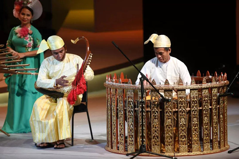 ▲2017年9月23日,第十五屆亞洲藝術節(jié)在浙江寧波開幕。圖為緬甸民樂演奏家在演奏樂曲《米亞曼吉利》。