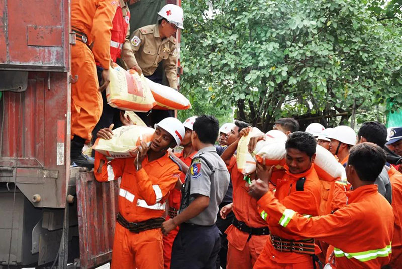 ▲2015年8月7日,云南省政府向緬甸災民捐贈的救災物資運抵曼德勒。持續(xù)降雨導致緬甸14個省邦中的12個省邦遭受不同程度水災。