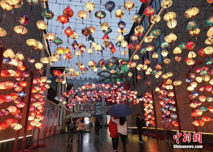 春節(jié)臨近,全國各地街頭張燈結(jié)彩年味漸濃。中新社記者 張茵 攝