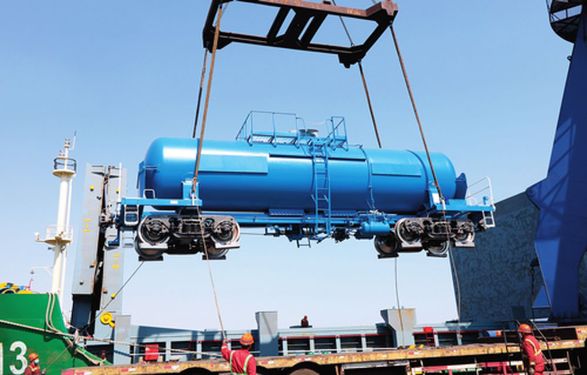 中車齊齊哈爾車輛有限公司出口韓國的濃硫酸罐車準備啟程發(fā)運(4 月 8 日攝) 宮巖攝 / 本刊