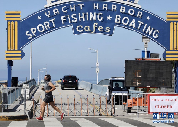 這是7月4日在美國洛杉磯縣拍攝的關(guān)閉的圣莫尼卡海灘。新華社發(fā)