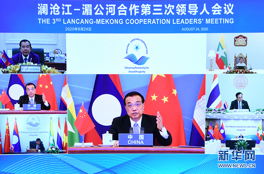8月24日,國務院總理李克強在北京人民大會堂出席瀾滄江-湄公河合作第三次領導人視頻會議。李克強和老撾總理通倫共同主持會議。柬埔寨首相洪森、緬甸總統(tǒng)溫敏、泰國總理巴育、越南總理阮春福出席。 新華社記者 饒愛民 攝