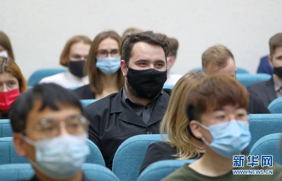 11月17日,人們?cè)诎锥砹_斯首都明斯克參加第七屆中白青年創(chuàng)新論壇開(kāi)幕式。新華社發(fā)(任科夫攝)