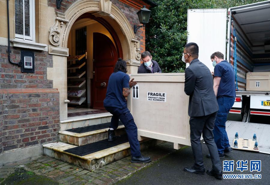 10月16日,在英國倫敦,工作人員協(xié)助中國駐英國大使館文化處清點文物。新華社記者 韓巖 攝