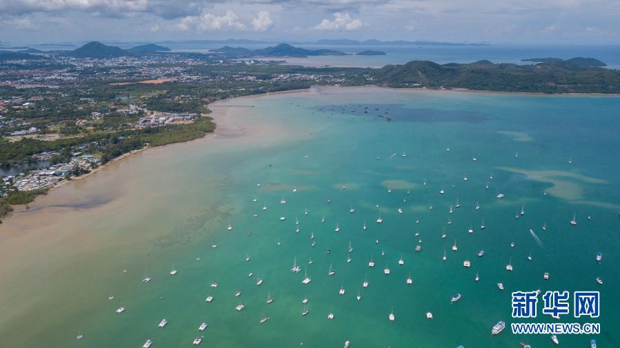 這是2020年9月14日拍攝的??吭谔﹪占獚u岸邊的游艇(無人機照片)。