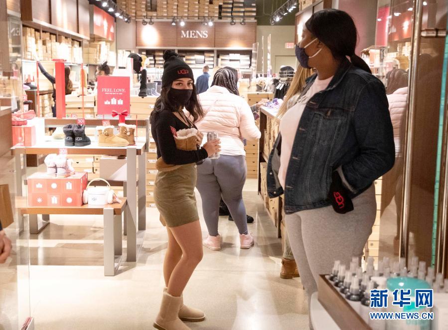 受新冠疫情影響,今年美國“黑色星期五”購物促銷日前往商店購物的人數較往年減少。