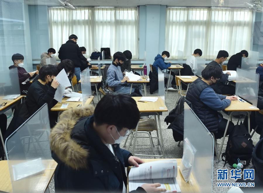 12月3日,在韓國京畿道城南市,考生們準備參加考試。新華社發(fā)(李相浩 攝)