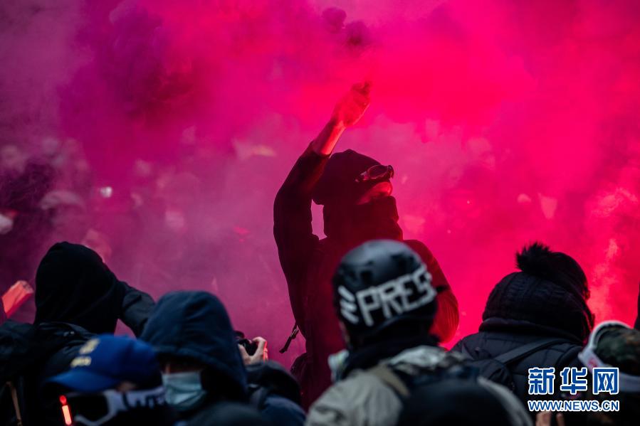 12月5日,人們在法國巴黎參加游行示威活動。新華社發(fā)(奧雷利安·莫里薩爾攝)