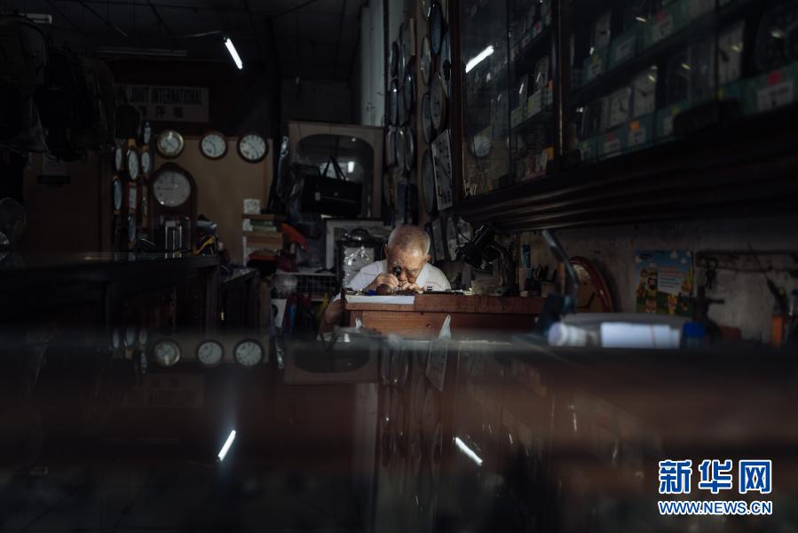12月5日,在馬來西亞雪蘭莪州巴生的郁昌表行,韋華在維修手表。新華社記者 朱煒 攝