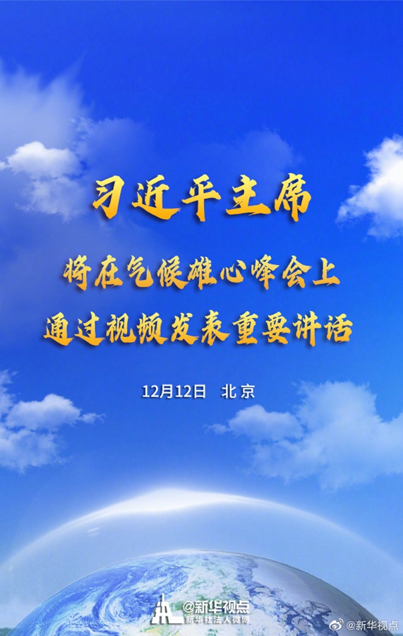 新華社北京12月11日電 外交部發(fā)言人華春瑩11日宣布:應(yīng)聯(lián)合國秘書長(zhǎng)古特雷斯、法國總統(tǒng)馬克龍、英國首相約翰遜、智利總統(tǒng)皮涅拉、意大利總理孔特聯(lián)名邀請(qǐng),國家主席習(xí)近平將于12月12日出席氣候雄心峰會(huì)并發(fā)表重要講話。會(huì)議將以視頻方式舉行。
