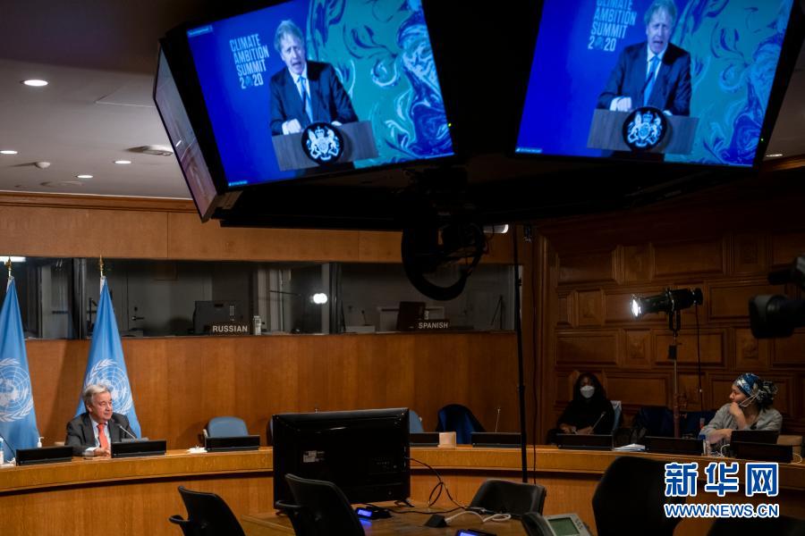 12月12日,在位于紐約的聯(lián)合國總部,聯(lián)合國秘書長古特雷斯(左)出席氣候雄心峰會。聯(lián)合國秘書長古特雷斯12日在氣候雄心峰會上致辭,呼吁全球進(jìn)入“氣候緊急狀態(tài)”。新華社發(fā)(聯(lián)合國供圖)