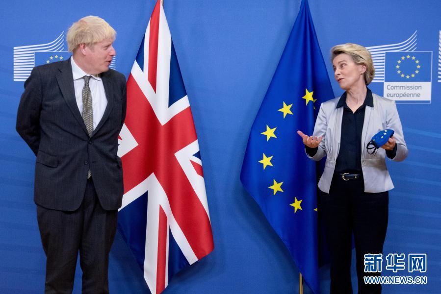 2020年12月9日,英國首相約翰遜(左)與歐盟委員會(huì)主席馮德萊恩抵達(dá)比利時(shí)布魯塞爾的歐盟總部,準(zhǔn)備進(jìn)行會(huì)晤。新華社發(fā)(歐盟供圖)