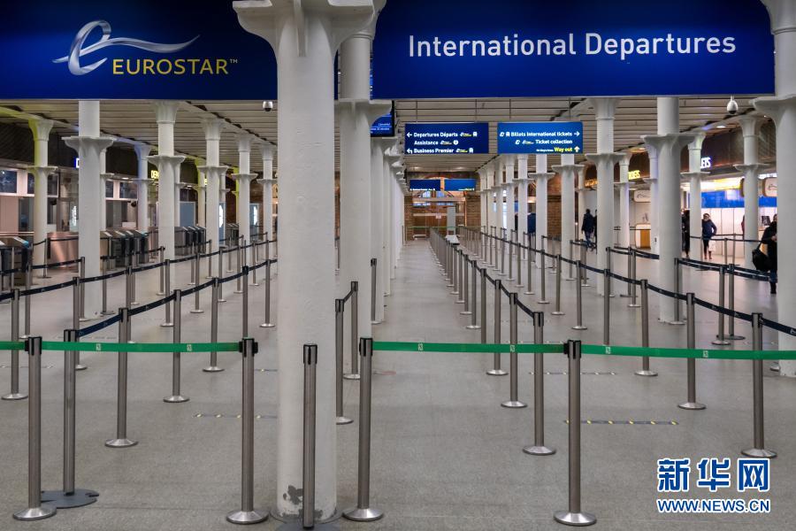 這是12月21日在英國倫敦圣潘克拉斯火車站拍攝的空蕩蕩的“歐洲之星”國際出發(fā)大廳。新華社發(fā)(蒂姆·愛爾蘭攝)