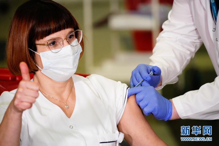 12月27日,在波蘭首都華沙一家醫(yī)院,一名護(hù)士接種新冠疫苗。